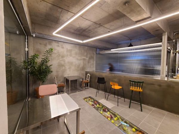 빈티지한 감성을 살려서 노출콘리트 벽면과